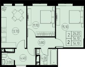 📚 Какая площадь двухкомнатных квартир?