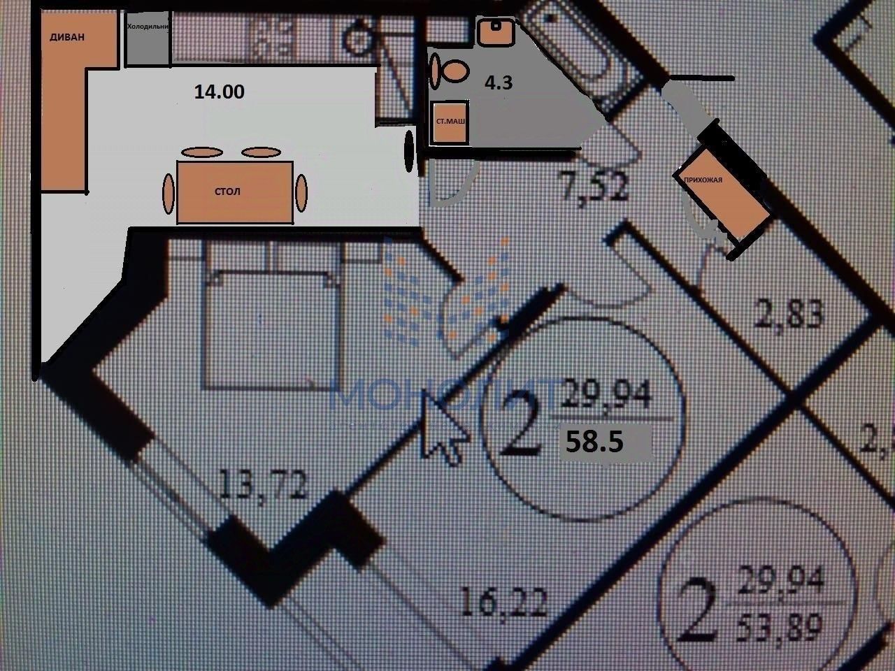 58 м² · Этаж 7 из 16