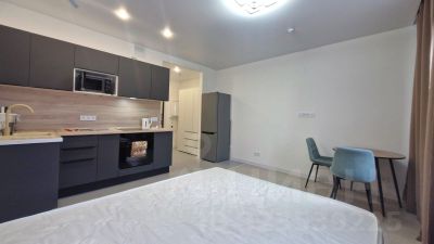 Уютная студия - это идеальное сочетание комфорта и функциональности. Пространство разделено на две зоны: кухню и спальню, что создает уютную атмосферу и позволяет эффективно использовать каждый квадратный метр.Кухня оборудована современными бытовыми приборами, включая холодильник и плиту. Здесь достаточно места для приготовления пищи, а также небольшой обеденный стол, где можно насладиться трапезой. Стены оформлены в светлых тонах, что визуально расширяет пространство и делает его более светлым.Разделяющая стенка между кухней и спальней выполнена в стильном дизайне. Это создает ощущение открытости, при этом обеспечивая необходимую приватность.Спальня оформлена в спокойных тонах, что способствует расслаблению и отдыху. Здесь размещена удобная кровать с качественным матрасом, а также шкаф для хранения одежды. Большое окно наполняет комнату естественным светом и открывает прекрасный вид на город. (лот 265129)Предоплата за 1 месяцЗалог 35 000 ₽
