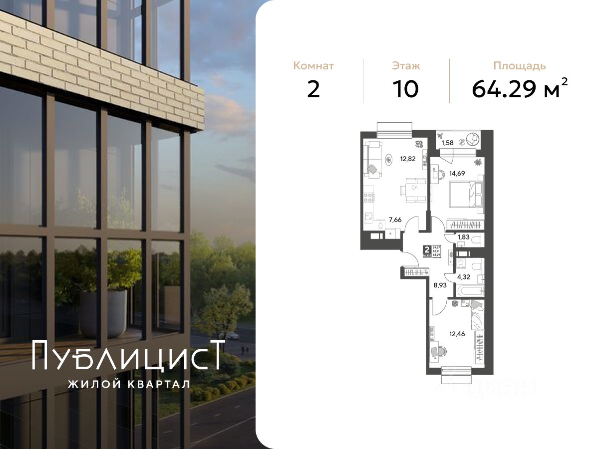 Общая площадь64,29 м2