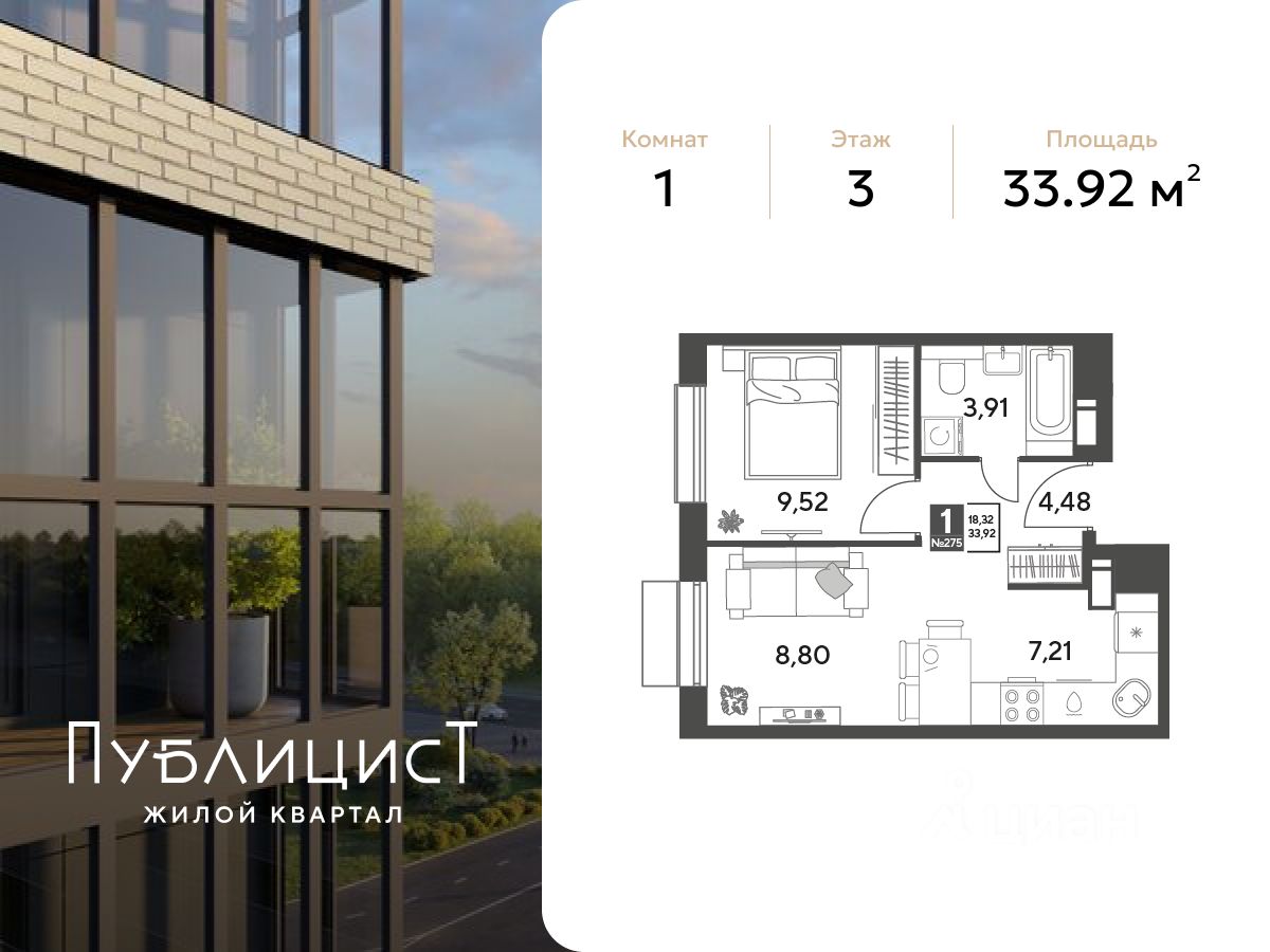 Общая площадь33,92 м2
