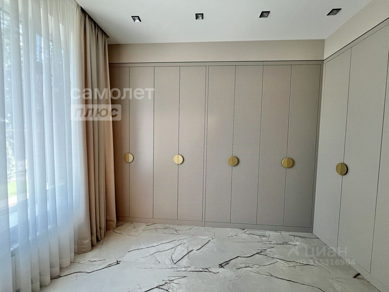 Двухэтажный коттедж, общая площадь 324,4 кв.м. Коттедж построен в 2023 году, завершение отделки в 2024 году. Планировка включает: 1 этаж - прихожая, большая гардеробная комната, гостиная с выходом на террасу, зона кухни - столовой, санузел, бойлерная, 2 этаж - две спальни с гардеробными комнатами и санузлами, детская спальня, санузел.