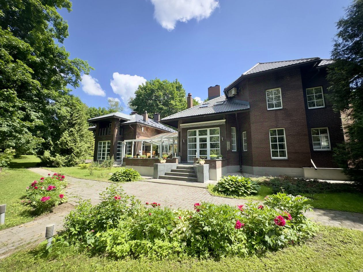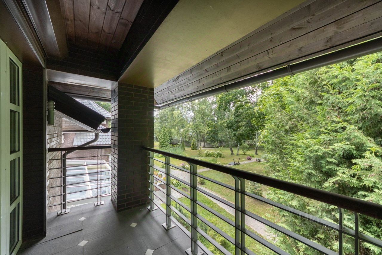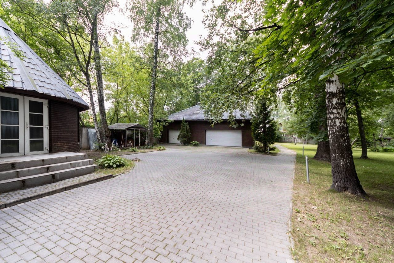 Ухоженная территория с газонами, лесным массивом и прудом. Участок благоустроен, огорожен забором по периметру и граничит с прибрежной полосой. На участке расположены гостевой дом с гостиной и 3 спальнями и с гаражом на 3 а/м, дом охраны, и другие постройки.