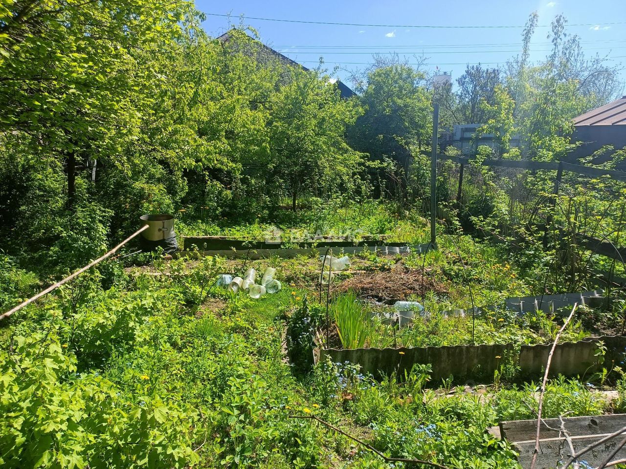 плодородный грунт,разбиты клумбы и грядки. Плодовые сортовые деревья (яблони, вишня, черешня, груша, слива,облепиха, ирга), кустарники (смородина, крыжовник, жимолость, ежевика и много малины) ммм объеденье)