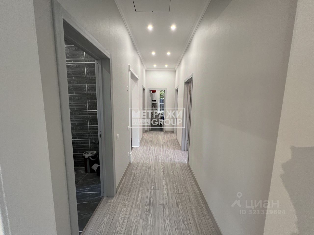 просторная кухня-гостиная 32 м² с панорамными окнами и выходом на террасу, санузел с ванной, коридор, бойлерная с дополнительным санузлом. 3 изолированные комнаты.