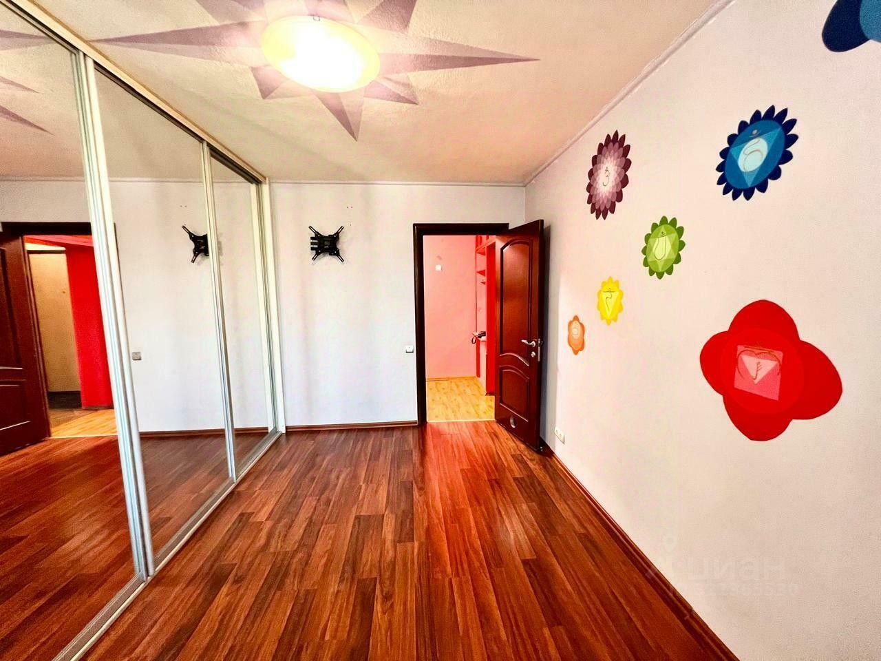 Это не просто квартира. Это - пространство силы. Тепло дерева под ногами. Свет, разливающийся по стенам. Мантры. Символы чакр. Потолок - словно солнце в зените. Ты заходишь - и будто оказался в другом мире. В мире, где нет суеты, только покой и вдох.