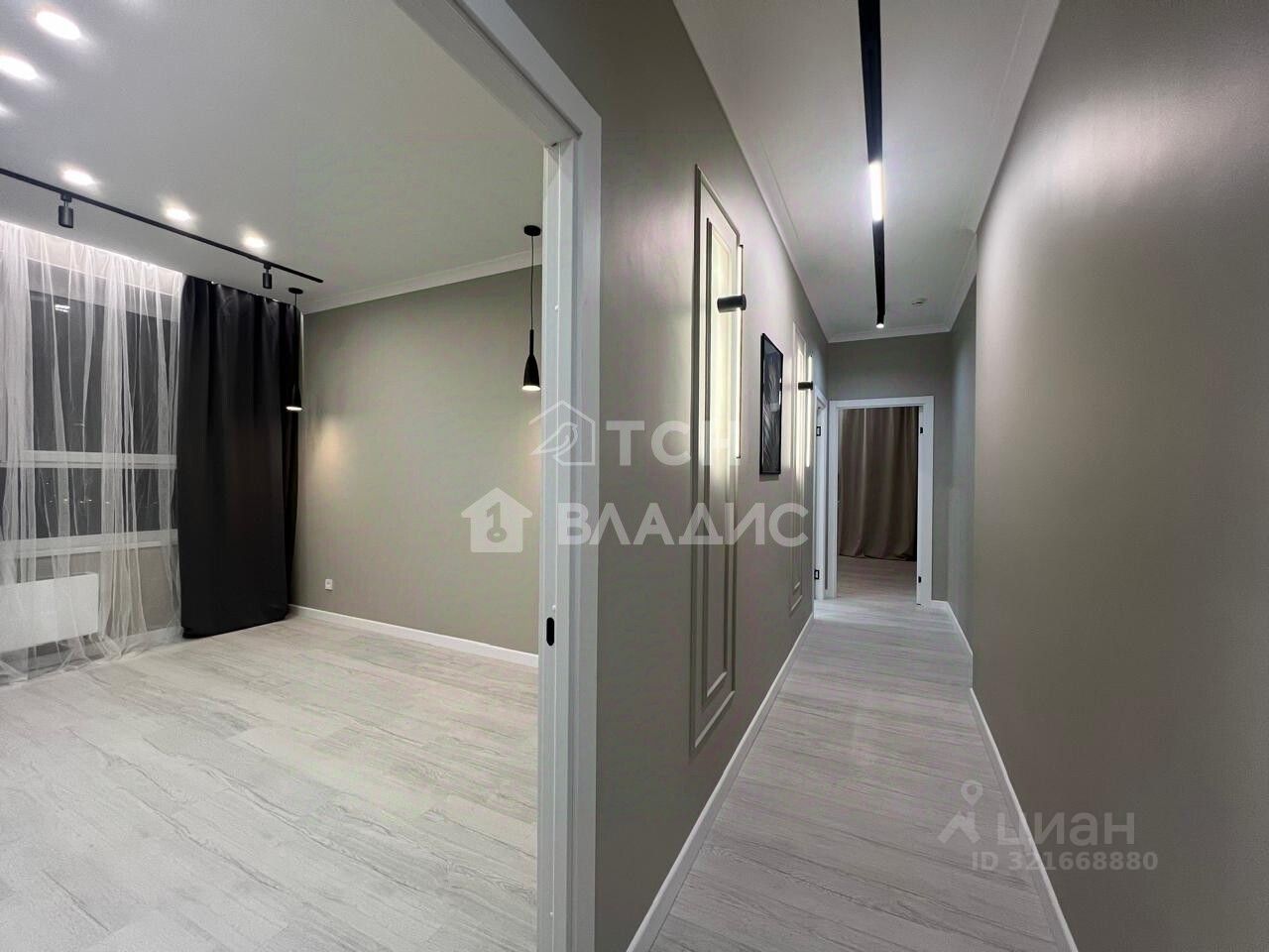 В квартире прекрасная планировка с большой кухней-гостиной площадью 16 метров и тремя изолированными комнатами: две по 12 метров и одна 13 метров. Общая площадь квартиры 77 метров, без учета лоджии. Совершенно новая, никто не проживал. Ремонт выполнен из качественных материалов, установлен теплый пол с сенсорным управлением. В просторной прихожей есть возможность сделать гардеробную. В подъезде четыре лифта: два грузовых и два пассажирских.