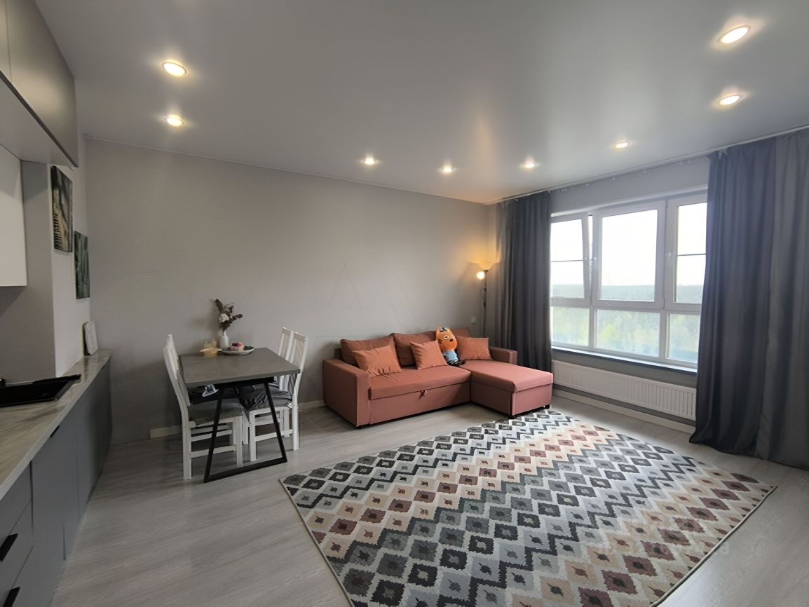 Квартира расположена на 16 этаже 17-этажного монолитного дома. Общая площадь 44.4 кв. М, жилая площадь 15 кв. М, кухня 20 кв. М.
