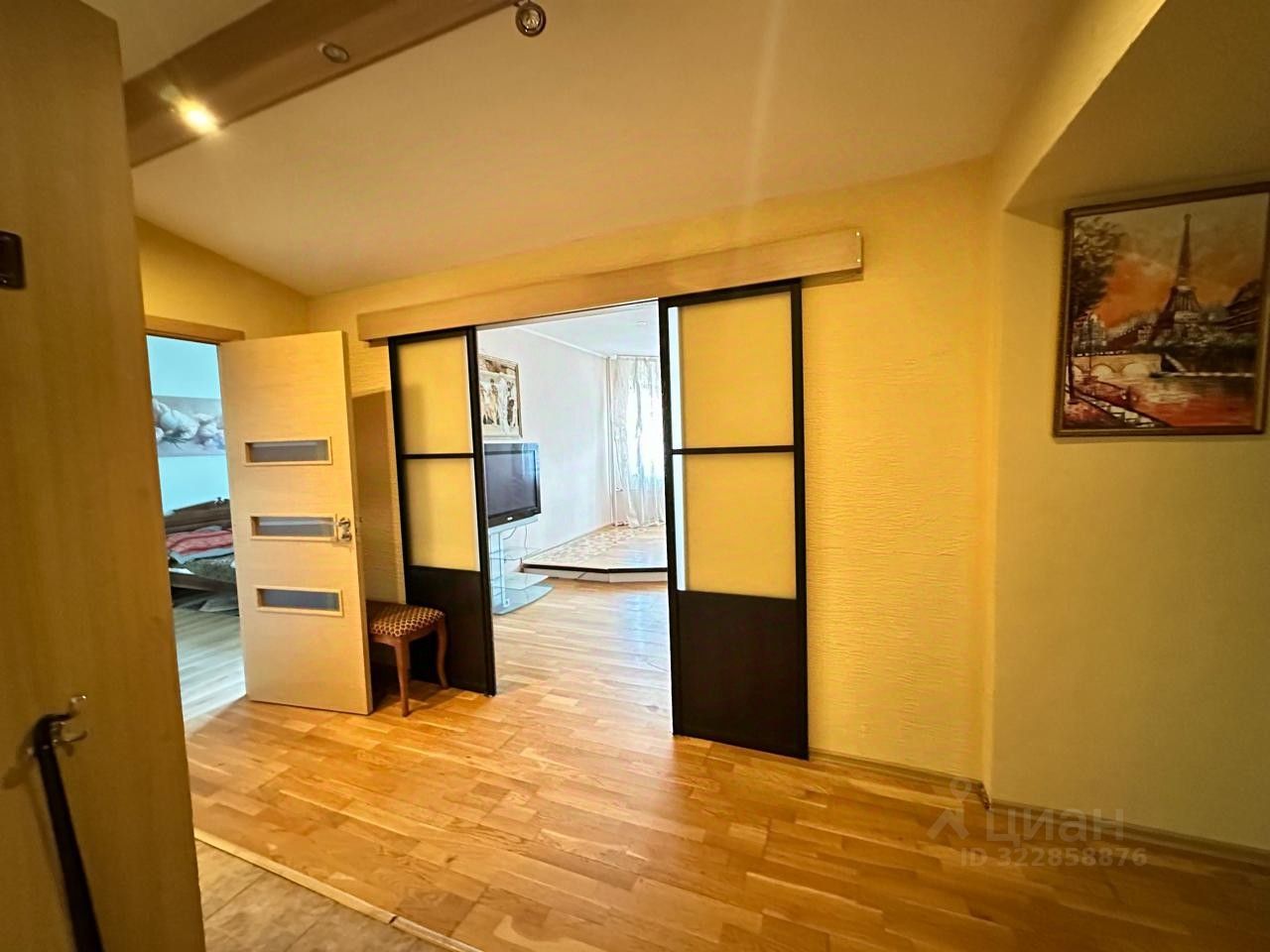 Описание квартиры: - Удобная планировка: изолированная спальня, гостиная с выходом в кабинет, кабинет с доступом в просторную кухню. - Раздвижные двери в квартире для удобства. - Свежий ремонт: стены покрашены моющейся евро-краской, полы отциклеваны. - Все окна выходят во двор, что обеспечивает тишину и уют.