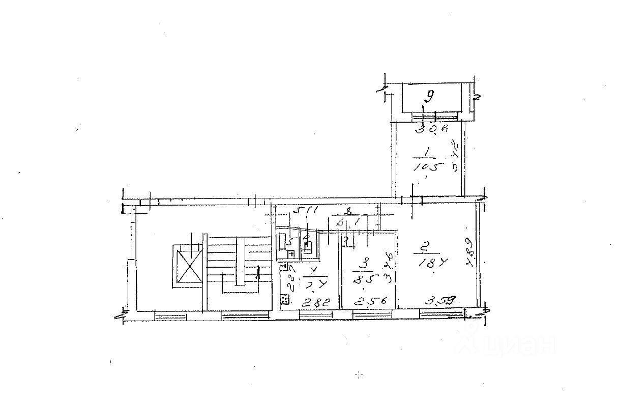 Продаётся трёхкомнатная квартира общей площадью 56,1 кв. м на 9 этаже девятиэтажного панельного дома 1972 года постройки. Квартира расположена по адресу: микрорайон Дзержинец, 7. Жилая площадь составляет 37,4 кв. м, а площадь кухни — 7,4 кв. м. Высота потолков 2,6 м создаёт ощущение простора. Комнаты имеют удобную площадь: 10,5 кв. м, 18,4 кв. м и 8,5 кв. м.