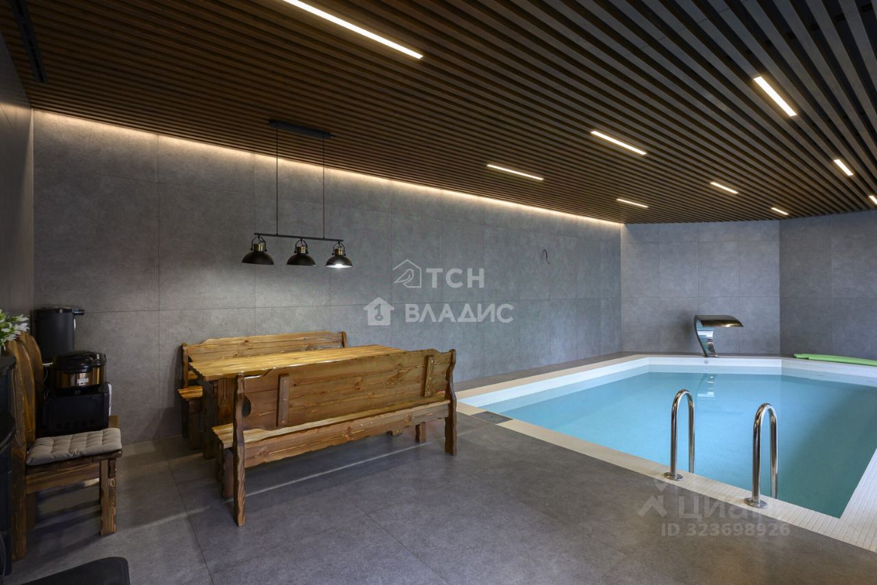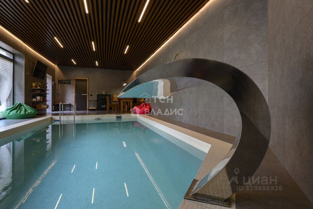 БАННЫЙ КОМПЛЕКС: Бассейн 7х3,5 метров, весь комплекс выложен высококачественным итальянским керамогранитом, чаша бассейна мозайка, реечный дизайнерский потолок, установлена качественная сплит система автоматической подачи и забора воздуха. Настоящая русская баня, мощная чугунная печь каменка, дизайнерская отделка парной с подсветкой и панно из можжевельника, большая парная рассчитана на 10 человек.