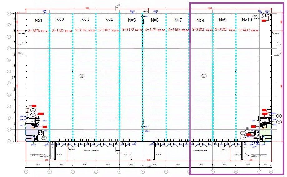 Общая площадь: 10 779 кв. м Склад: 9 779 кв. м Офис: 1 000 кв. м (обсуждается)