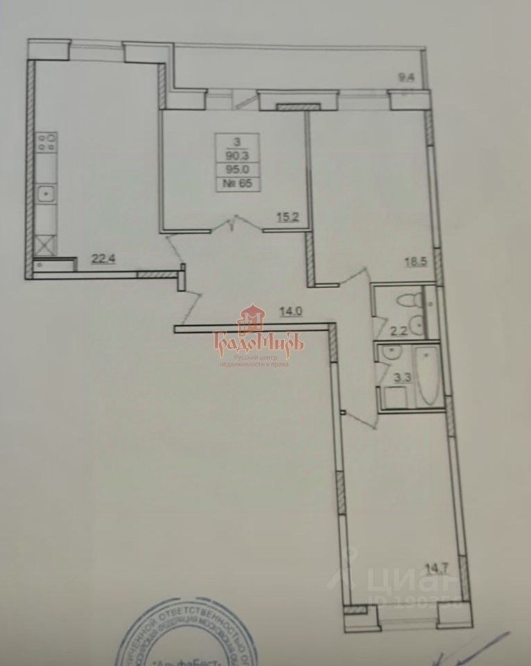 Арт. 127154495 ЭКСКЛЮЗИВ! Роскошная 3-комнатная квартира 91 м² с видом на реку Серебрянка!