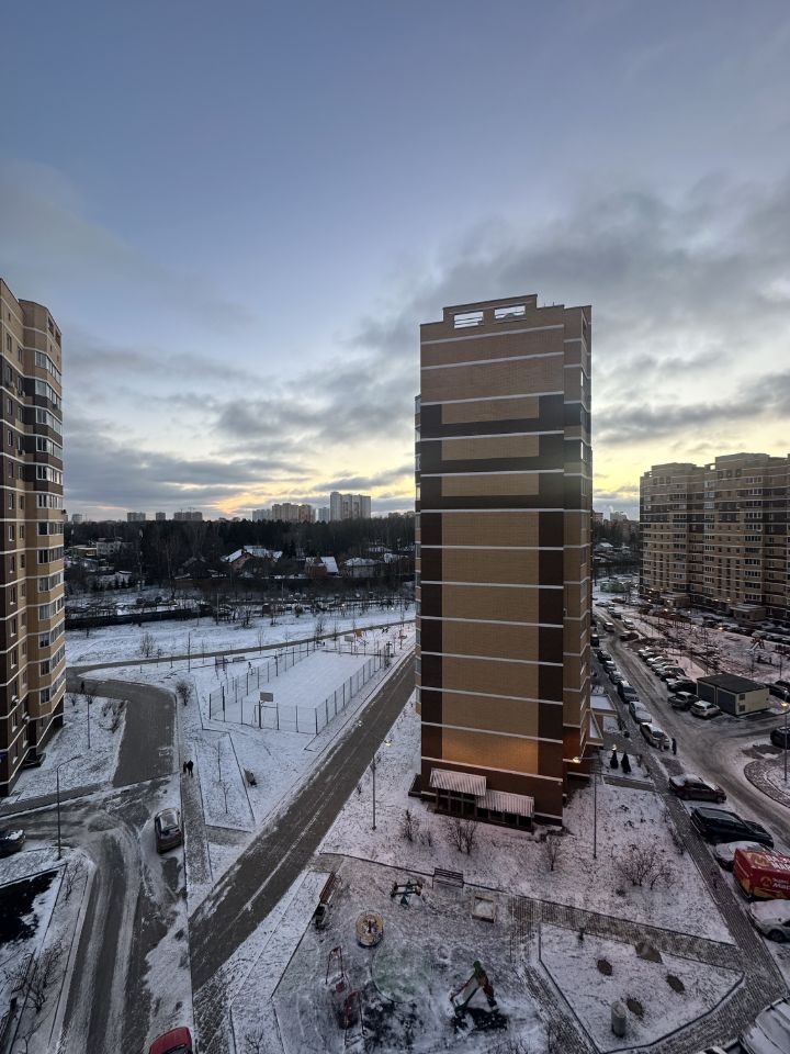 Красивый вид из окна. Расположение дома удобное, рядом много магазинов, детских площадок, школа, детский сад.