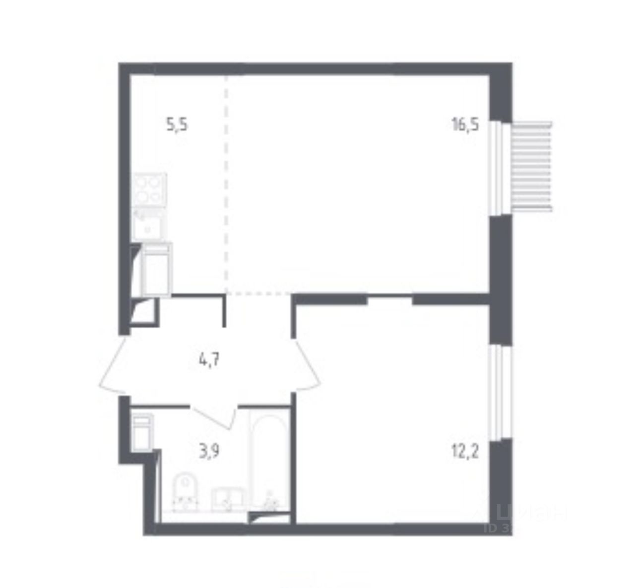 ''Евродвушка'' - отдельная спальня 12 кв. и просторная кухня-гостиная 22 кв.