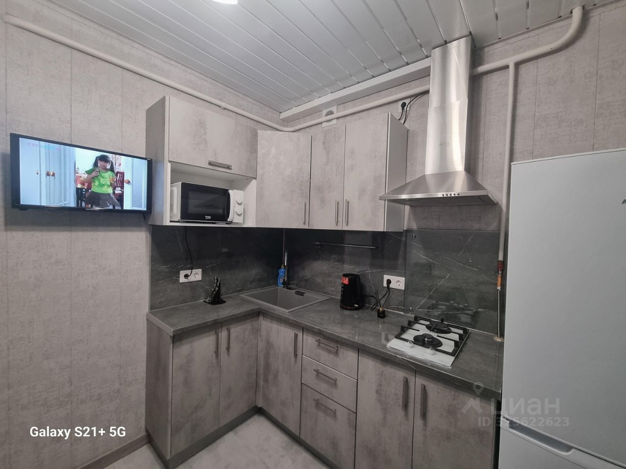 В квартире есть все необходимое для комфортного проживания: современная мебель на кухне и в комнате, а также вся необходимая бытовая техника — холодильник, телевизор и стиральная машина. Планировка удобная, санузел совмещенный, оборудован ванной.