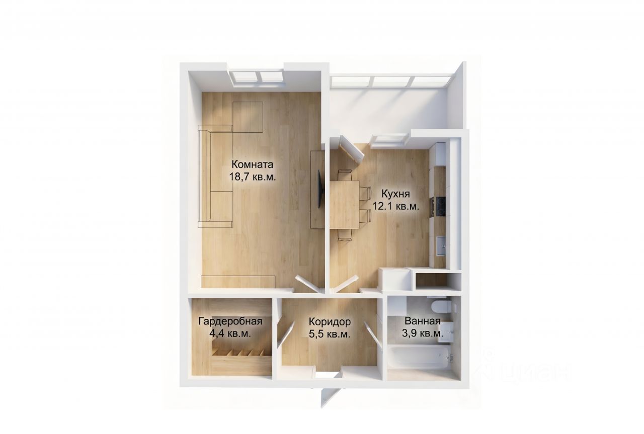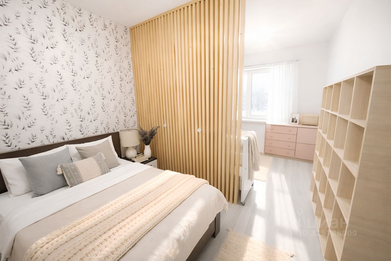 Отличная планировка: большая кухня (12 м²), просторная комната с грамотно выделенной спальной зоной и вместительная прихожая. Выполнен современный ремонт в светлых тонах, состояние — ''заезжай и живи''.