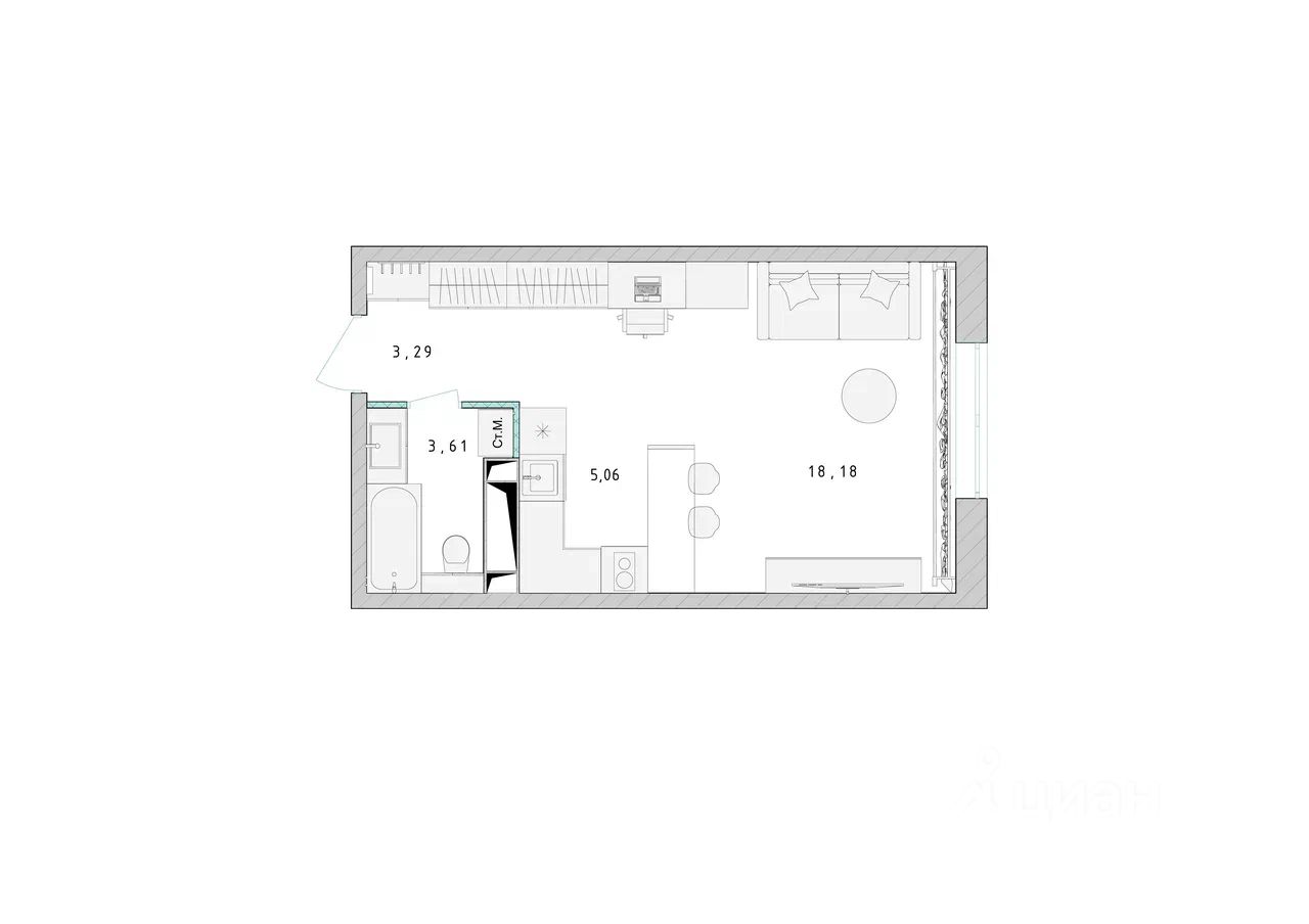 Продаётся студия в сданном доме (Корпус 1), срок сдачи: 4-кв. 2023, общей площадью 30.10 кв.м., на 10 этаже.