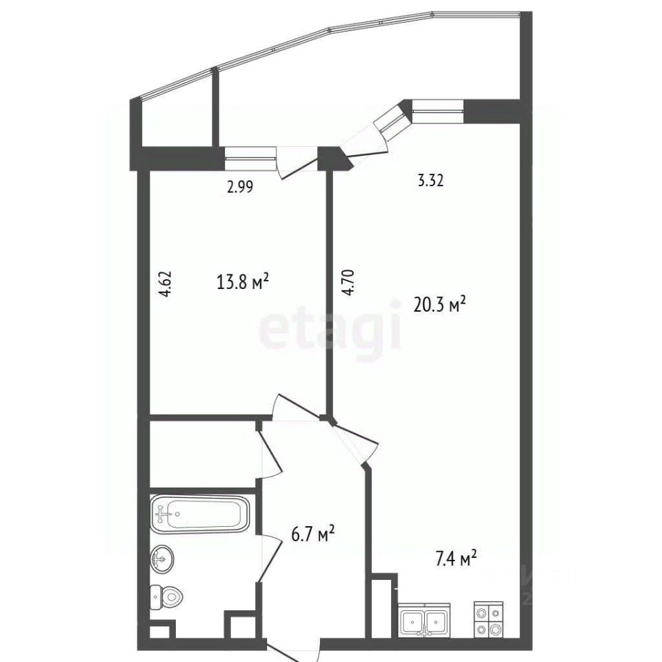 Удобно расположенная на 5 этаже 17-этажного монолитного дома, квартира площадью 58 кв. м. обладает просторной кухней в 9 кв. м. и потолками высотой 3 метра. Окна выходят во двор.