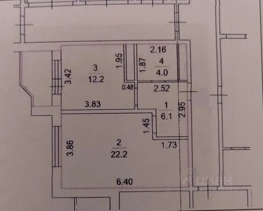 Продается ПРОСТОРНАЯ Однокомнатная квартира общей площадью 44,5 кв.м с кухней 12,2 кв.м. и комнатой 22,2 кв.м.