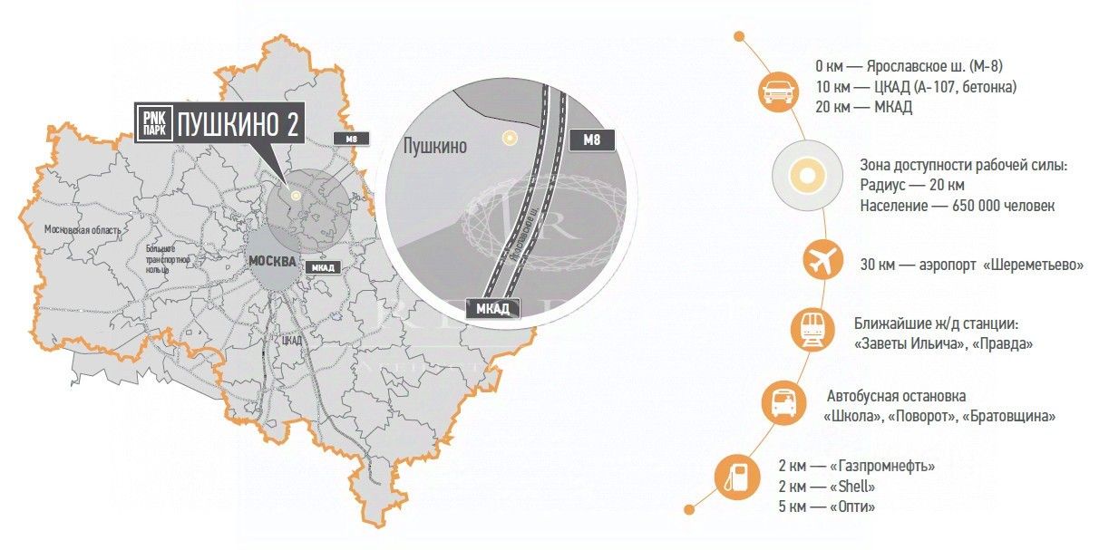 Склад расположен в Северо-Восточном направлении по адресу: Московская область, г. Пушкино, Ярославское шоссе.